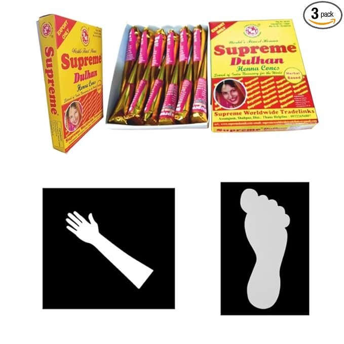 - High-Quality Henna Cones: Comes with 12 natural henna cones, providing rich, vibrant paste for detailed applications and long-lasting results.